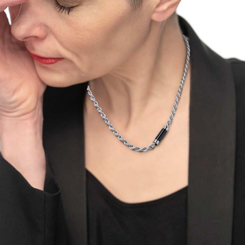 Orecchini da donna Brosway Essential BNL095, pendenti e lunghi 67 mm, in acciaio inossidabile 316L rodiato, colore argento. Design con due catene asimmetriche, una più lunga e una più corta. Chiusura a perno, finitura anallergica. Eleganti e dal look ricercato, perfetti per aggiungere movimento e stile ad ogni outfit.