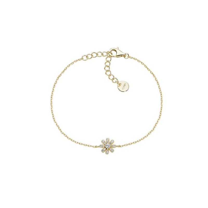 Bracciale da donna Amen BRFIPGBZ3. Questo gioiello a catena in Argento 925 dorato è impreziosito da un mini charm a margherita da 8 mm, con uno zircone centrale e petali realizzati in pavé di zirconi bianchi. La lunghezza è regolabile da 16 cm a 19 cm, grazie all'allungo. Perfetto per donare un accento luminoso e femminile al tuo polso o come idea regalo di grande raffinatezza. Codice BRFIPGBZ3.